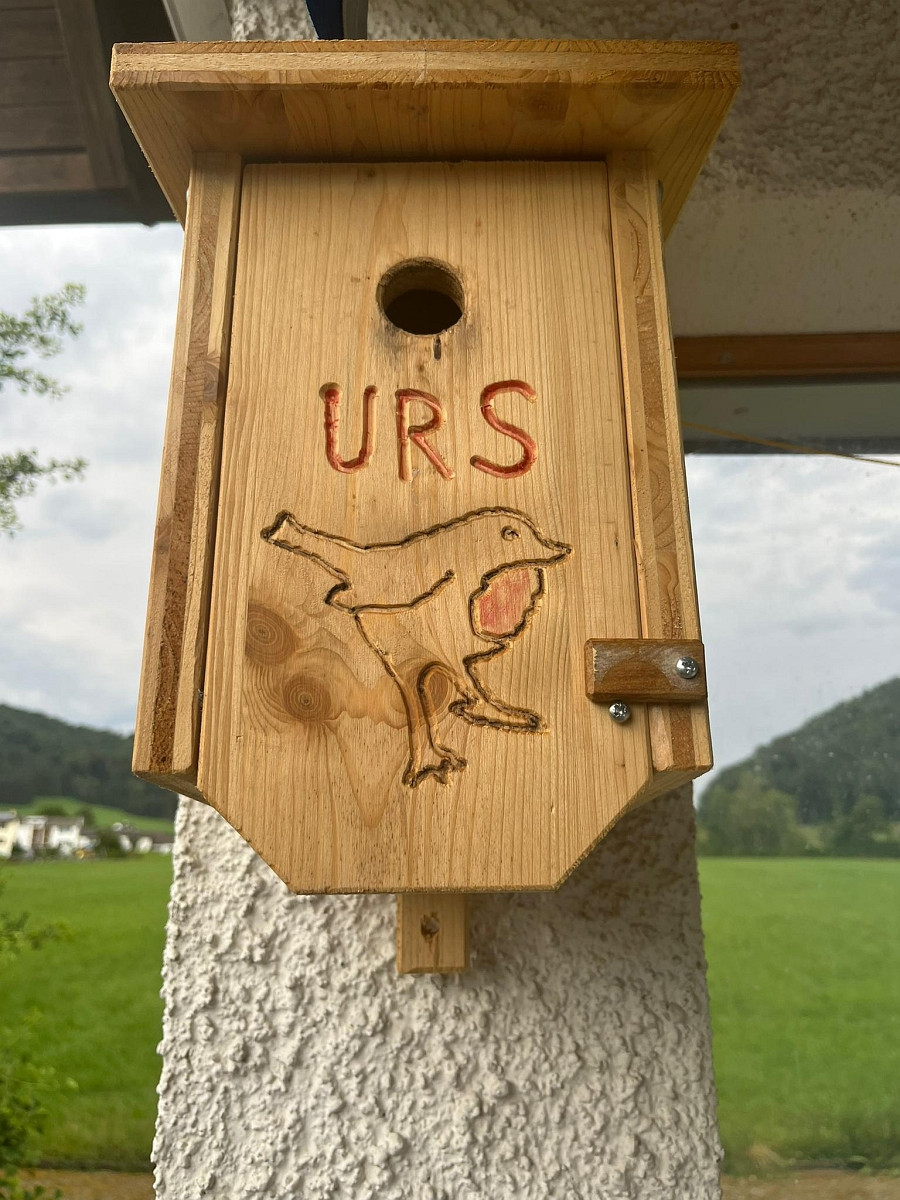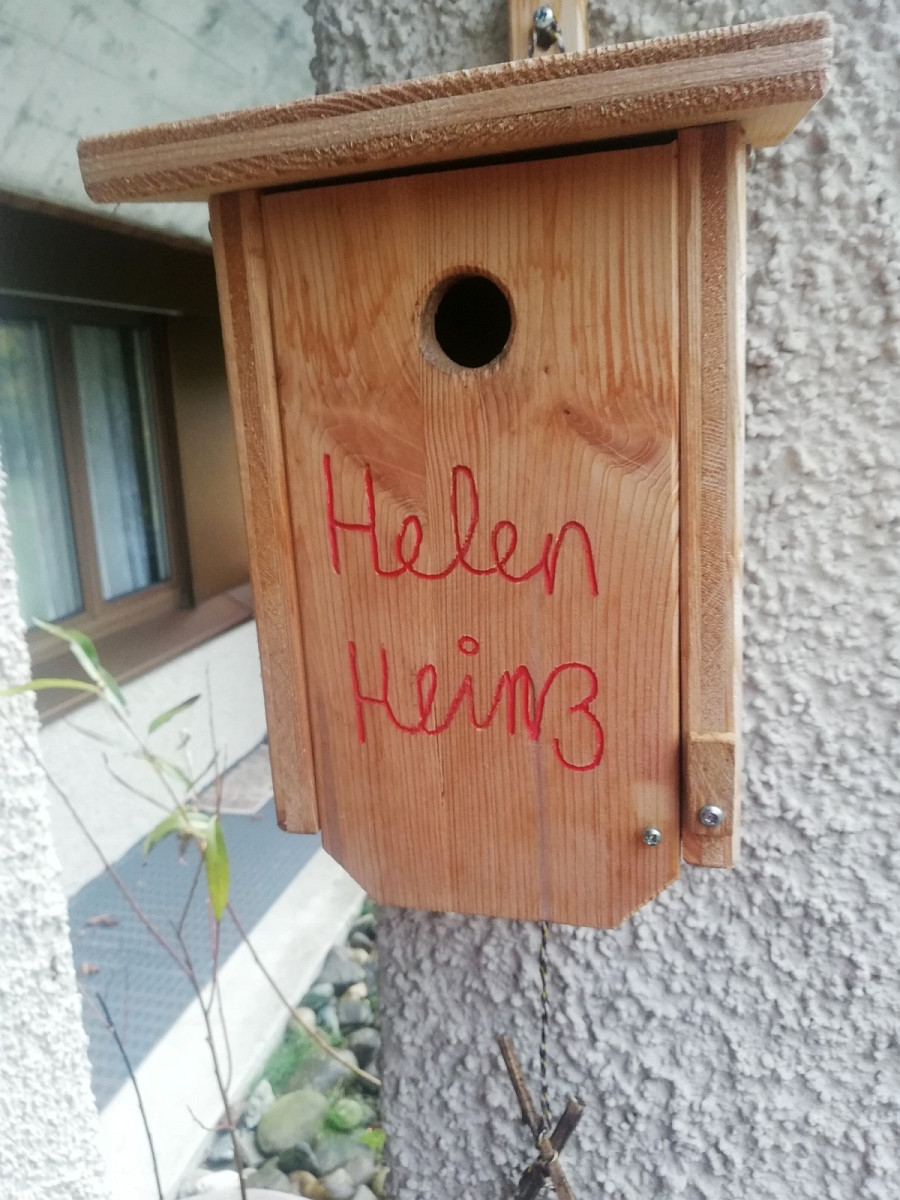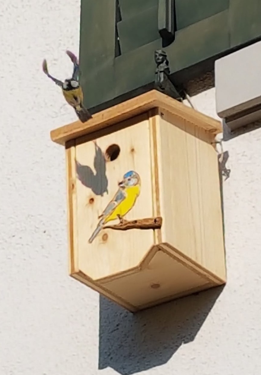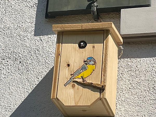 Lassen sich die Vögel nicht durch die Vogeldarstellung an der Front irritieren? Ich denke nicht. Auch diese Bird Box war schon nach kurzer Zeit besetzt - mit einer Blaumeise. Auch andere Nisthilfen waren schon im ersten Frühling besetzt - zur Freude der Besitzer!