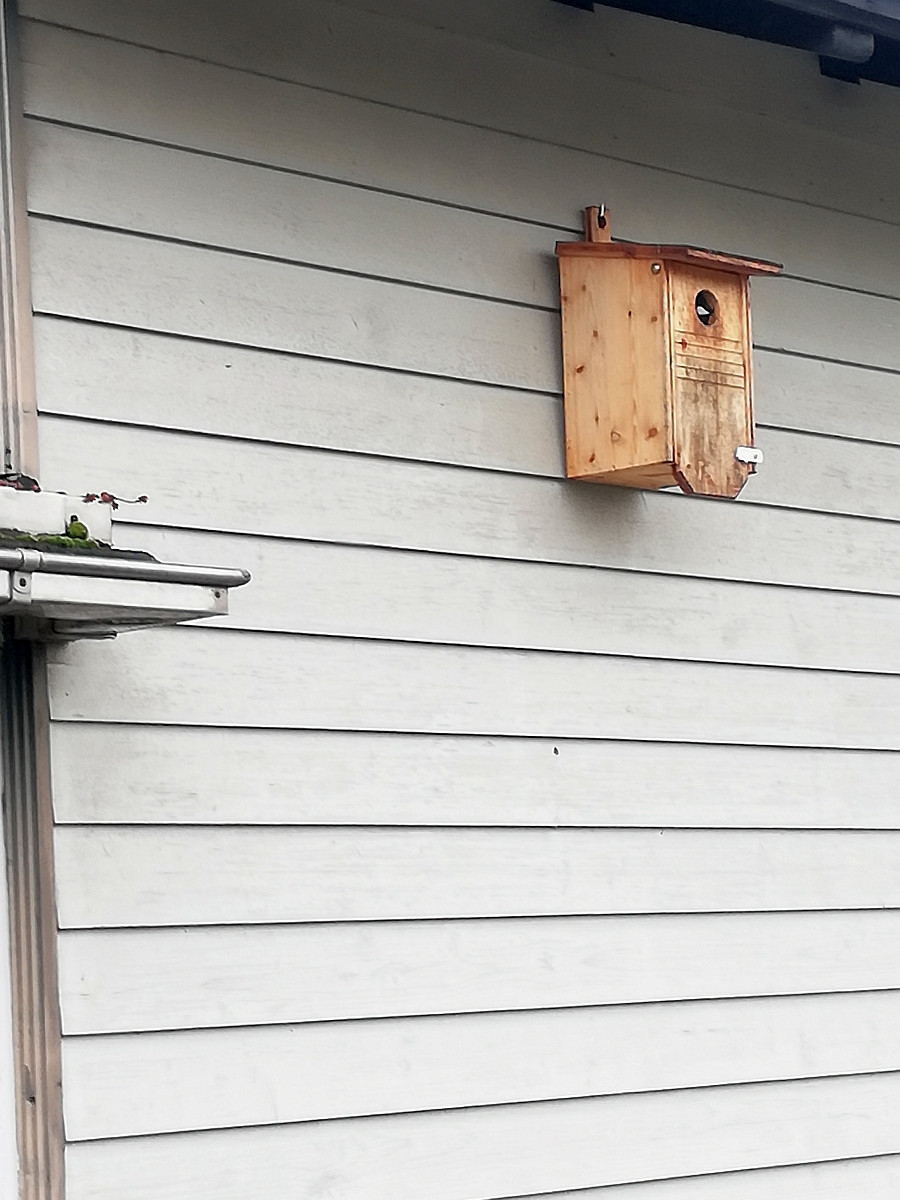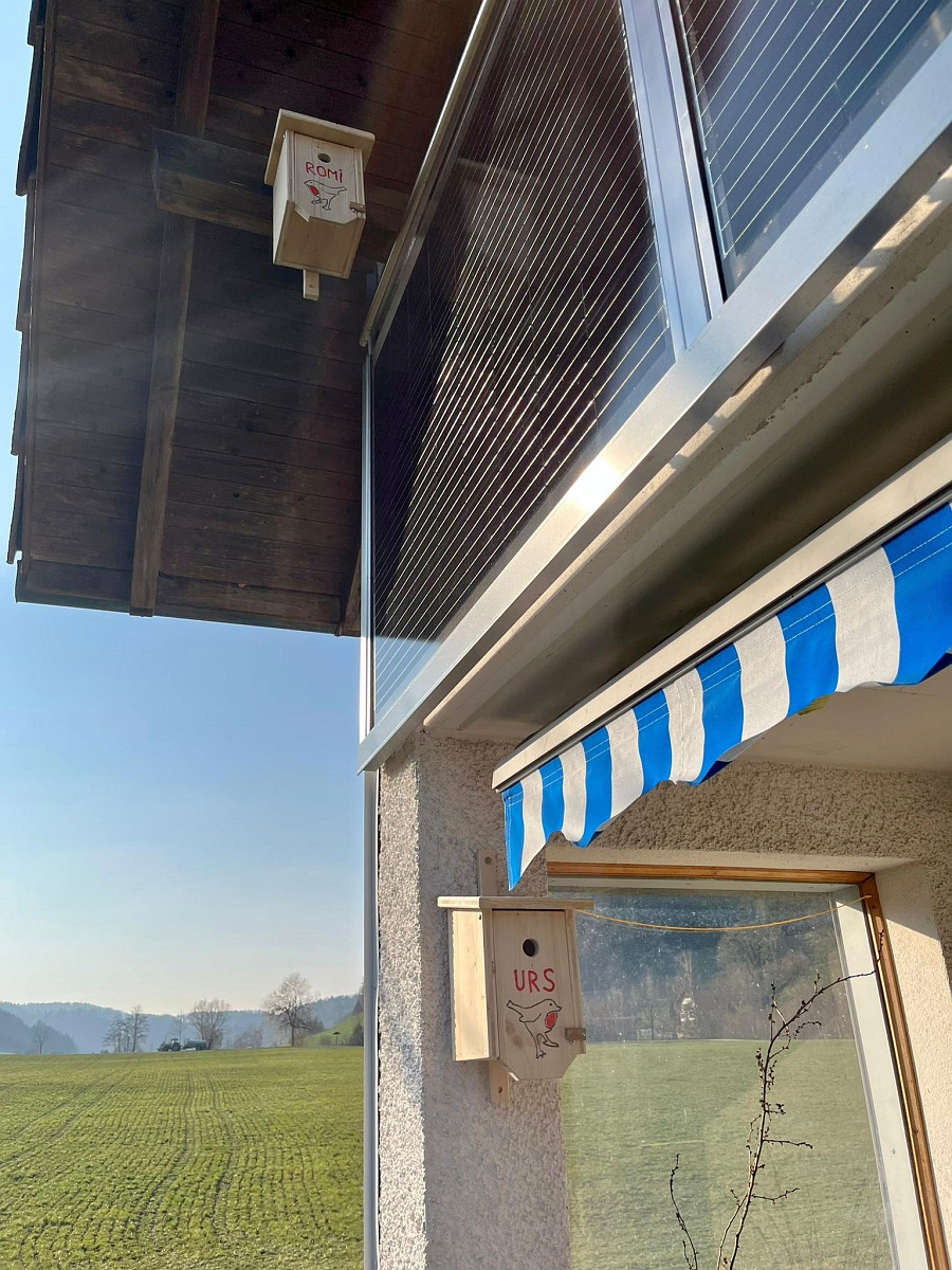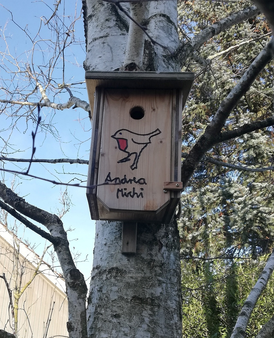 Lassen sich die Vögel nicht durch die Vogeldarstellung an der Front irritieren? Ich denke nicht. Auch diese Bird Box war schon nach kurzer Zeit besetzt - mit einer Blaumeise. Auch andere Nisthilfen waren schon im ersten Frühling besetzt - zur Freude der Besitzer!